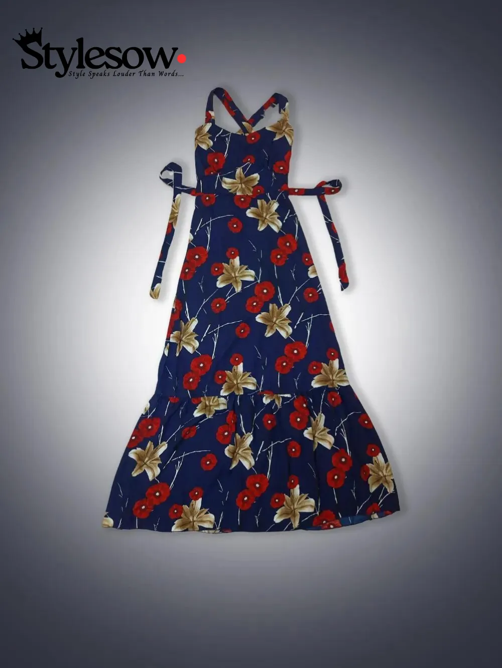Long Floral Maxi Dress-Blue quantity