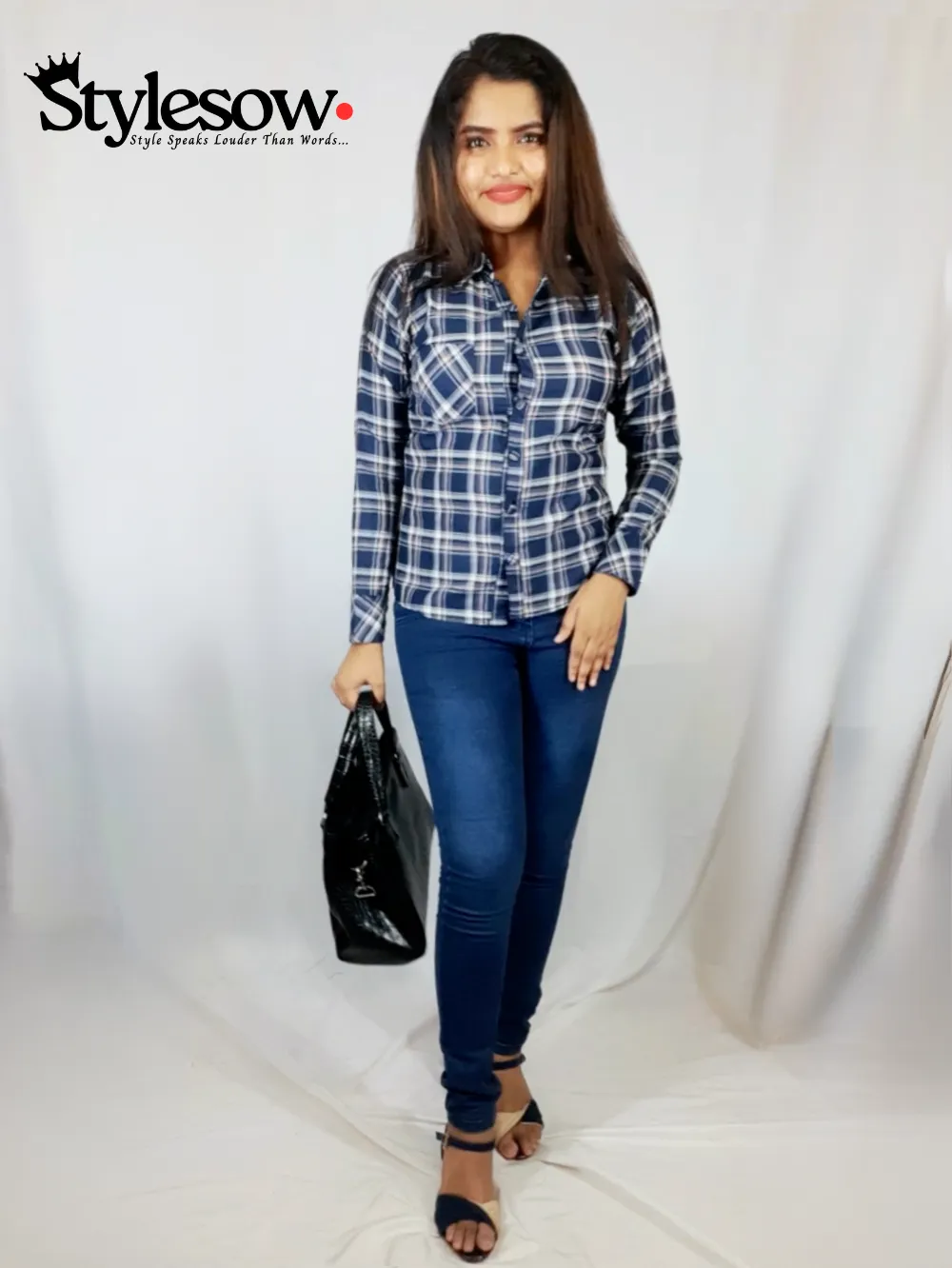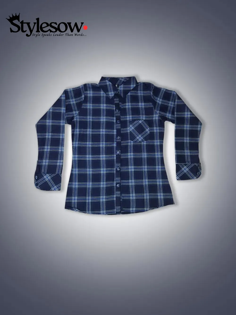 Long Sleeve Check Blouse-Dark Blue